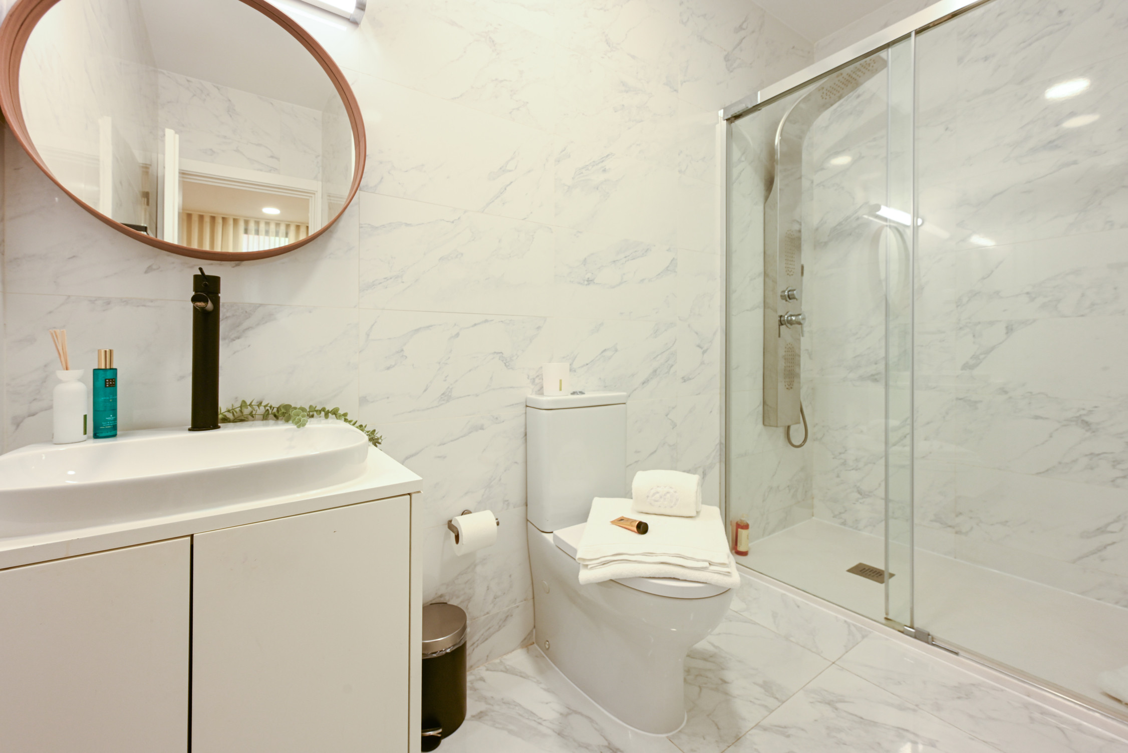 Bathroom: With high-quality stone and ceramic finishes, equipped with a modern and functional shower.