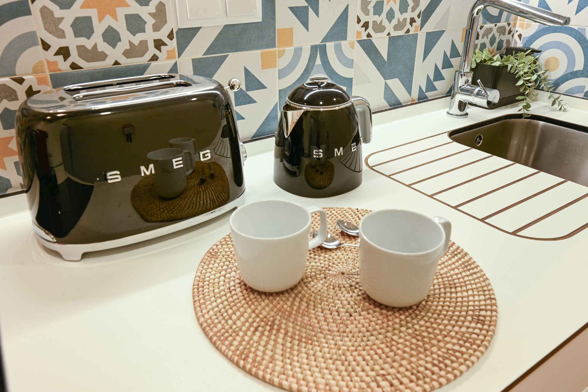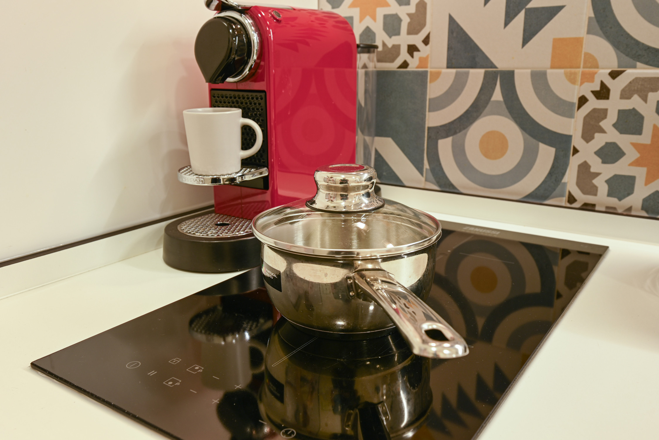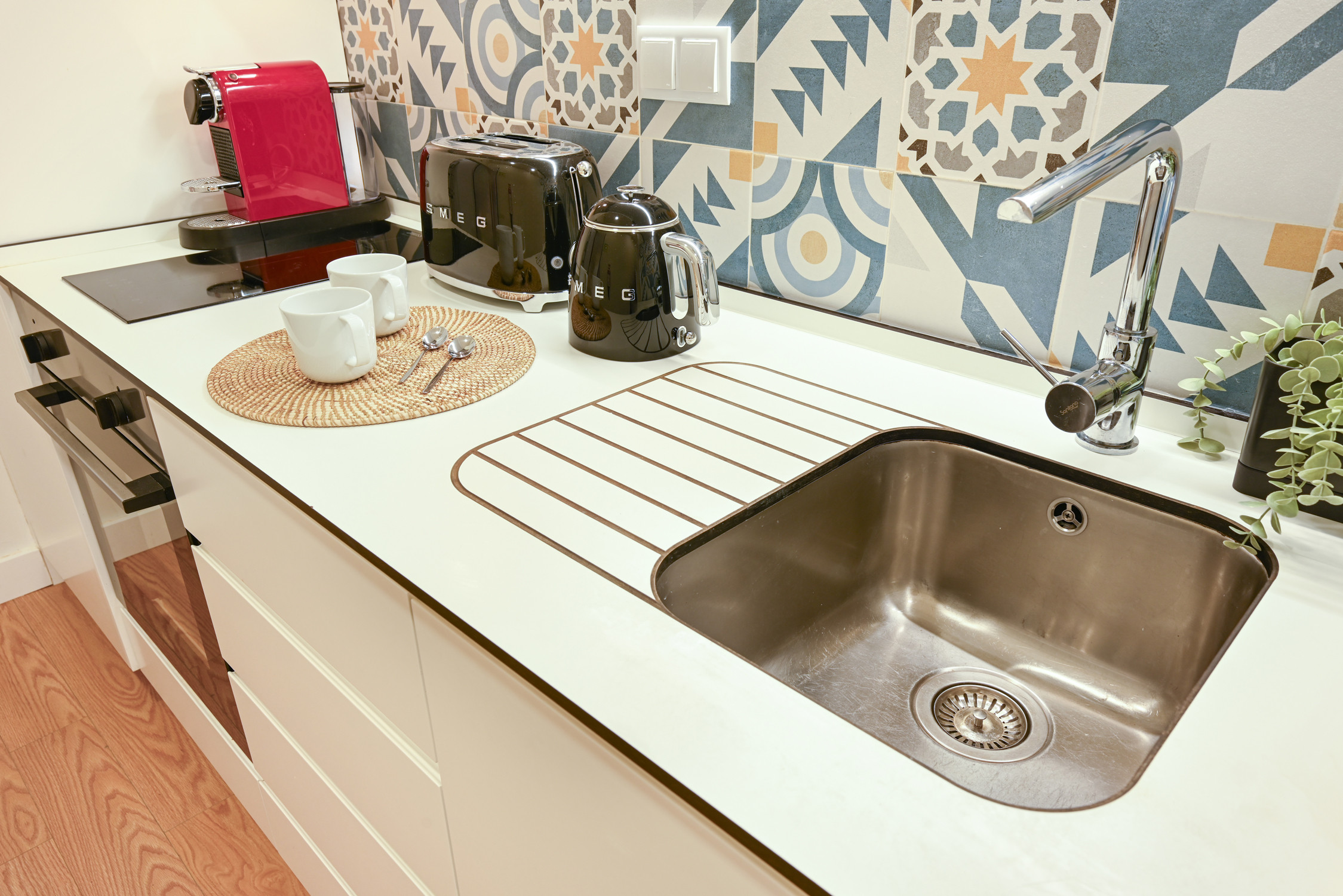 Kitchenette: Fully equipped with state-of-the-art appliances (hob, oven, fridge and coffee machine), seamlessly integrated into the dining space.