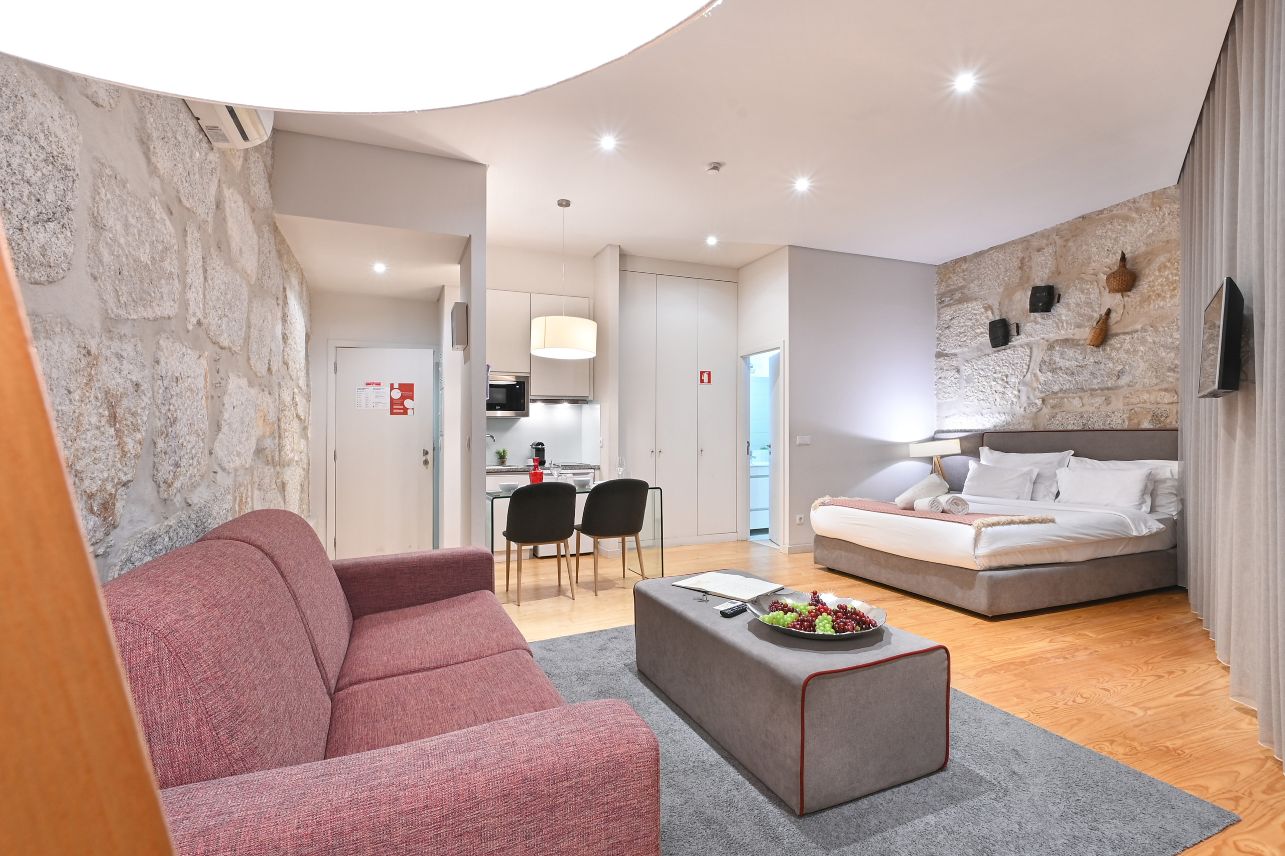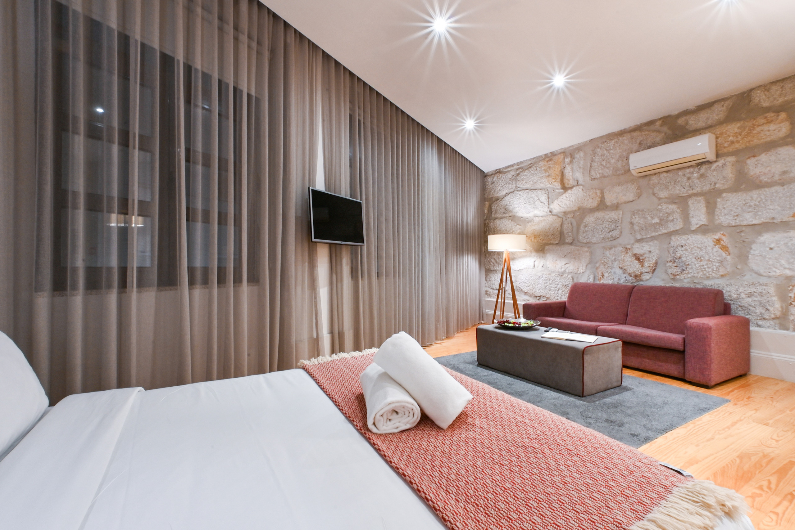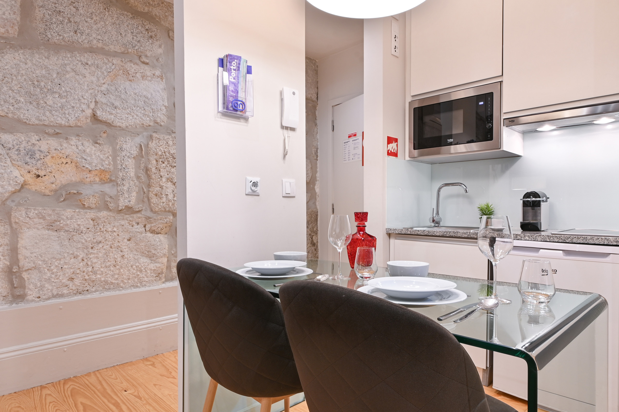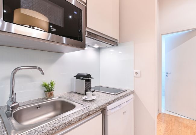The studio in Porto has capacity for 4 people. The studio is 35 m². The accommodation is equipped with the following items: iron, internet (Wi-Fi), hair dryer, balcony, air-conditioned, covered parking near the building, 1 TV. In the hotplate of glass ceramics open plan kitchen, refrigerator, microwave, freezer, dishes/cutlery, kitchen utensils, coffee machine, toaster and kettle are provided.