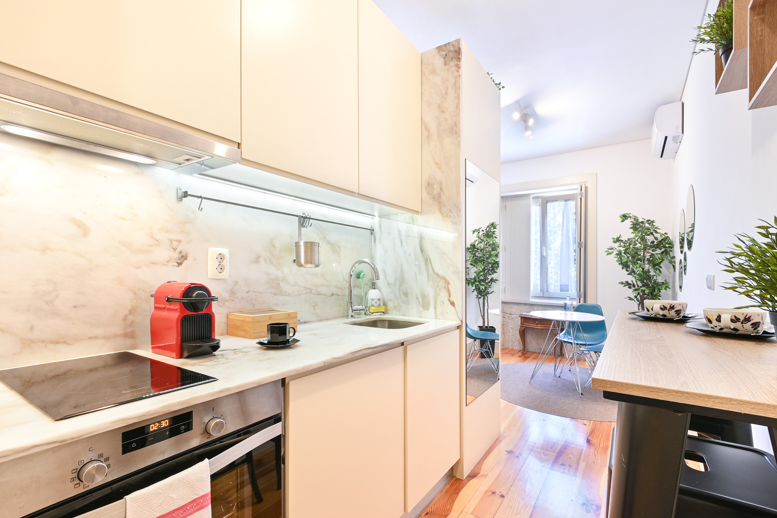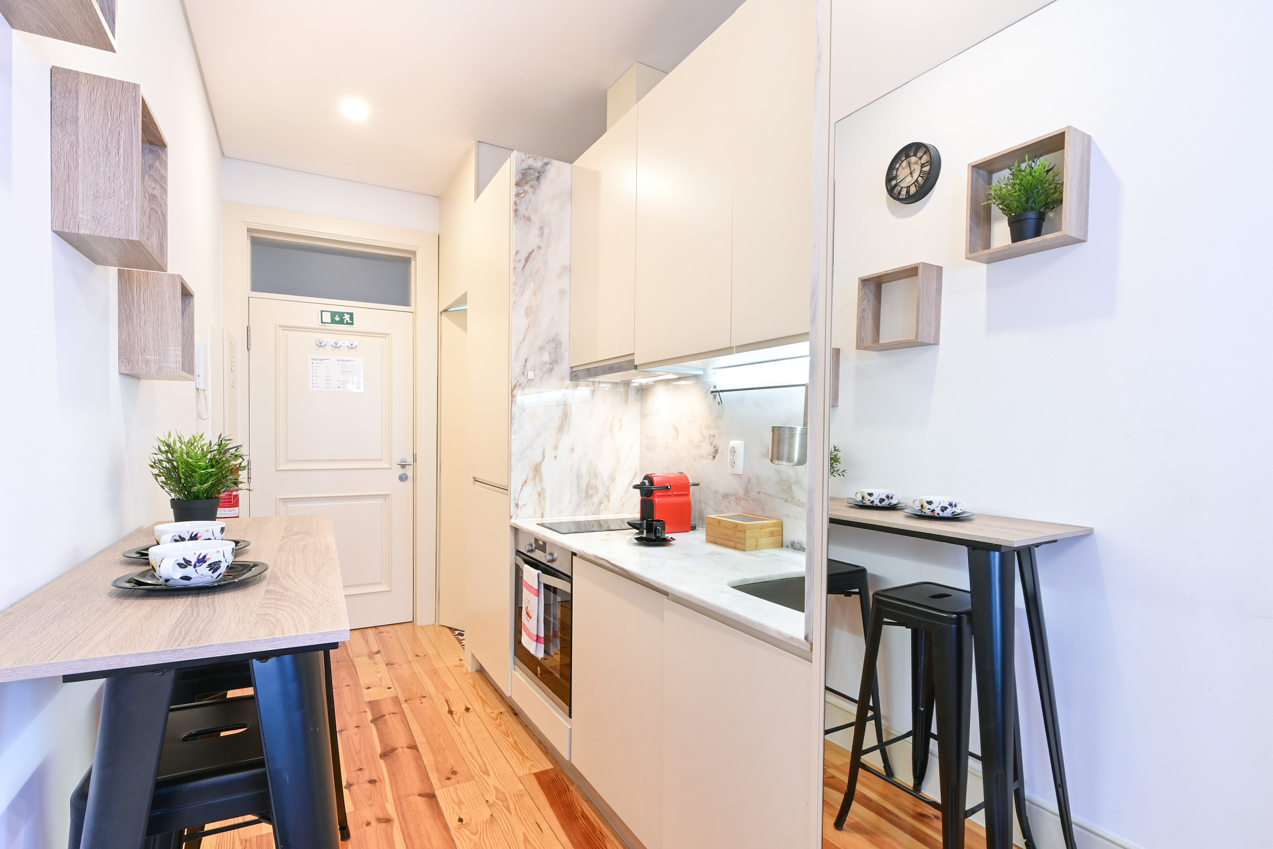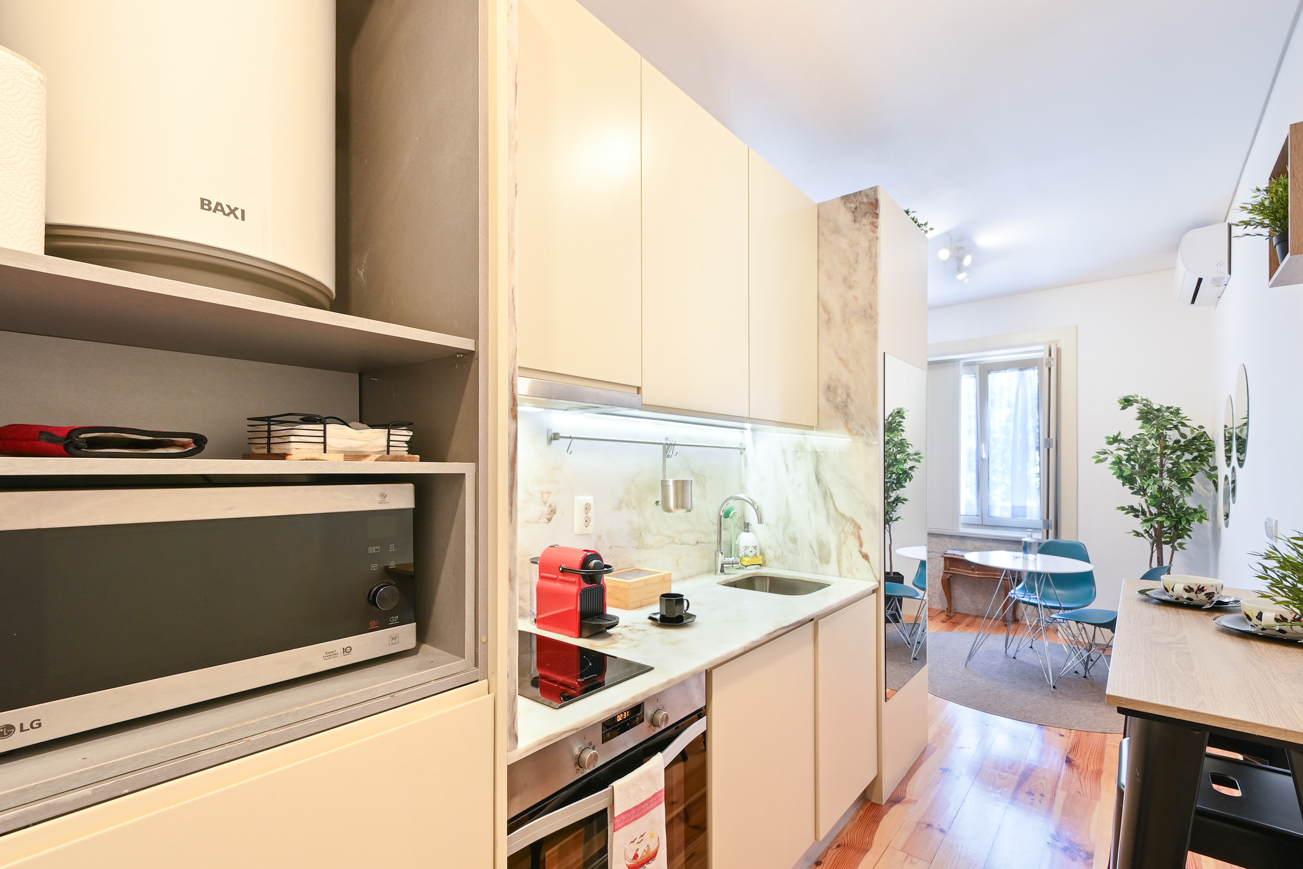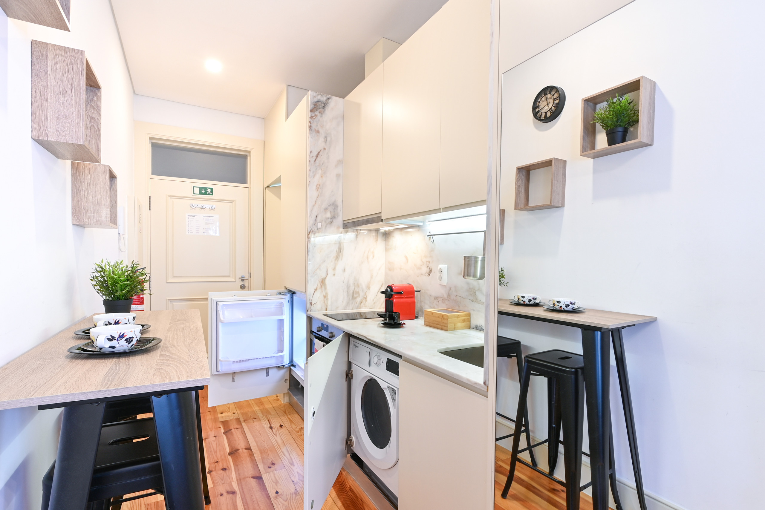 The studio in Porto has capacity for 2 people. The studio is 34 m². The accommodation is equipped with the following items: washing machine, dryer, iron, internet (Wi-Fi), hair dryer, air-conditioned, covered parking near the building, 1 TV. In the hotplate of glass ceramics open plan kitchen, refrigerator, microwave, oven, freezer, dishes/cutlery, kitchen utensils, coffee machine, toaster and kettle are provided.